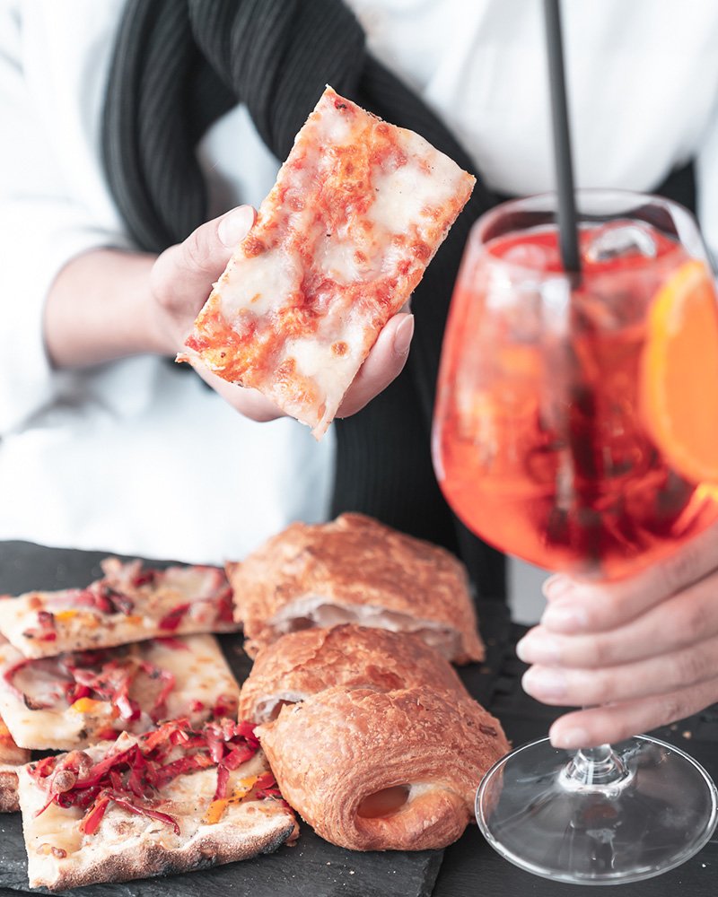 Pensiamo a tutto noi per un aperitivo con il cocktail giusto, la pizza calda che scegliete al momento, crostini e altre cose buone che prepariamo ogni giorno. Vi aspettiamo.